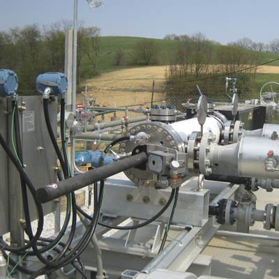 All FMD provers are equipped with two temperature and one pressure transmitter. One temperature transmitter is used for expansion calculations on the switch bar. The other temperature transmitter works in conjunction with the pressure transmitter to verify process fluid temperature and pressure during the proving process.